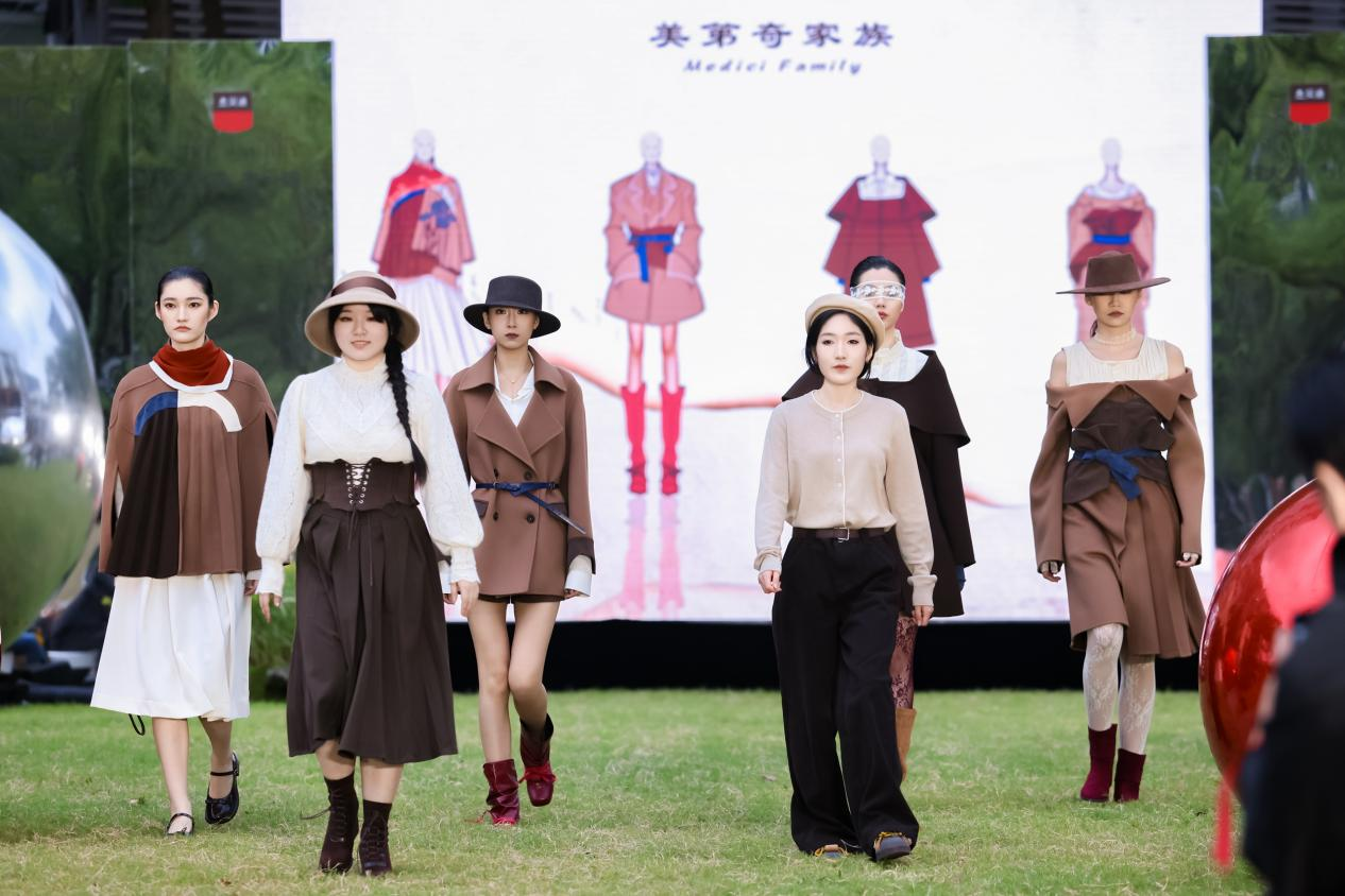 為鼓勵創(chuàng)意與商業(yè)融合而特別設立的最佳人氣獎,結合小紅書平臺人氣與現(xiàn)場媒體評審意見,最終花落來自武漢紡織大學的朱清沁雅、安鑫琪及其作品《美第奇家族》。