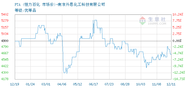 12月10日恒力石化關于PTA的報價為4650元/噸。PTA的規(guī)格:等級:優(yōu)等品。該報價有效期為3天。報價提供方:南京外恩化工科技有限公司。
